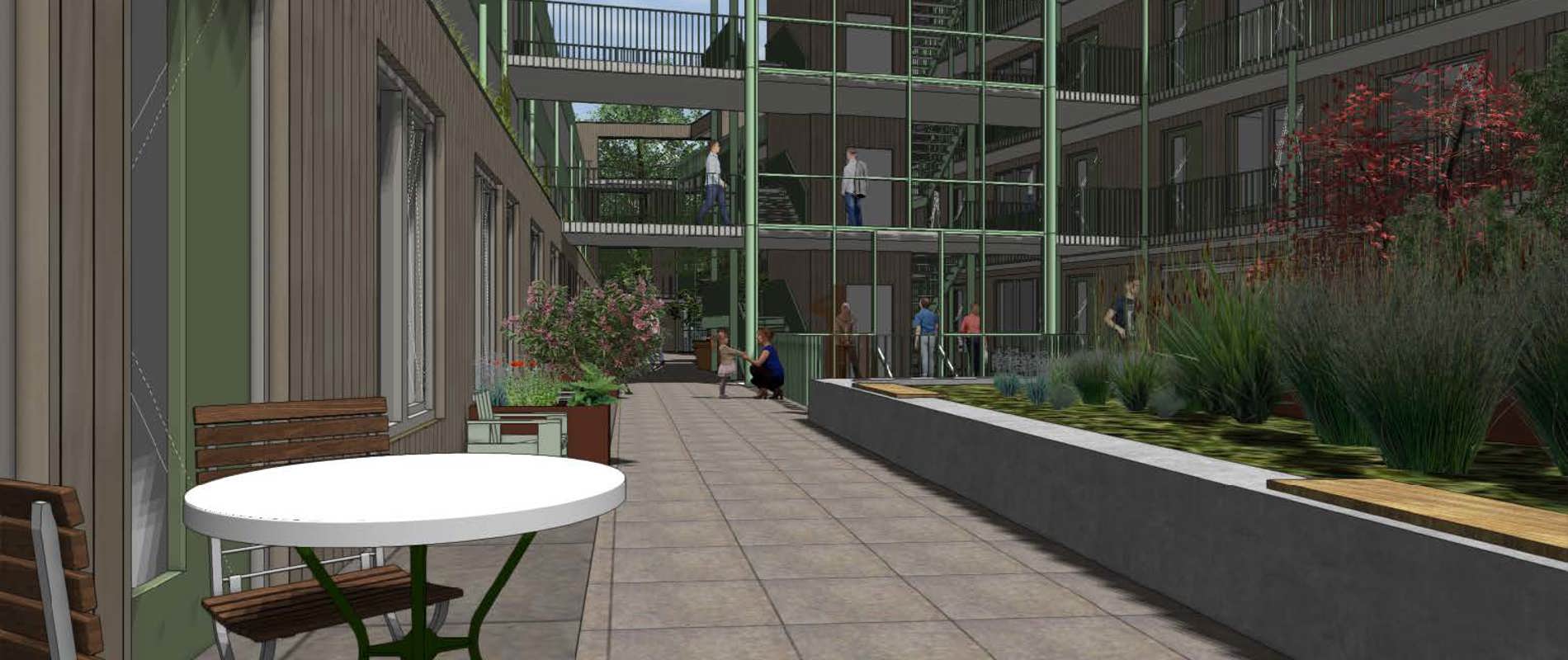 Op het ernaast gelegen perceel hebben we reeds 64 sociale huurwoningen voor de Alliantie gebouwd. Zo ontstaat er een mooie mooie combinatie van woningen in verschillende, bereikbare prijsklassen. Daar is in Hilversum grote behoefte aan.