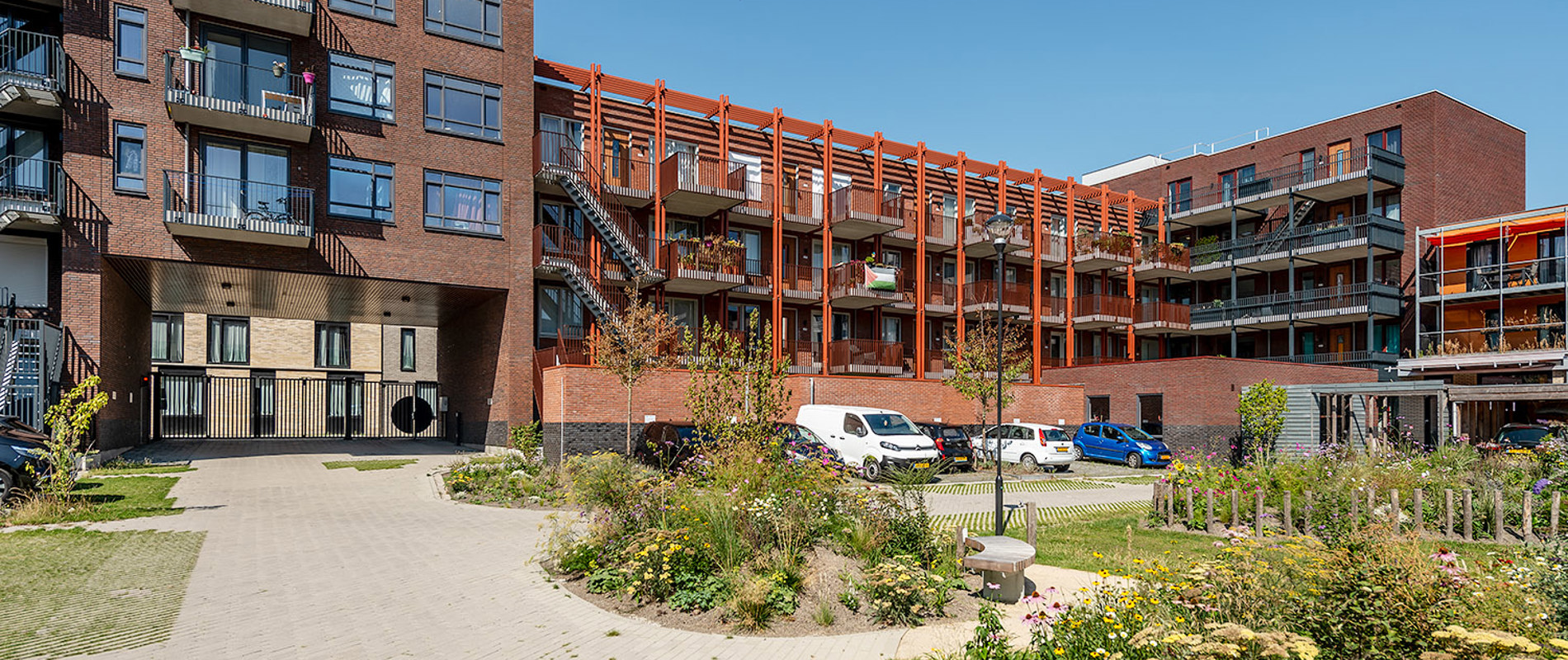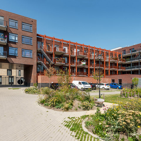 Op het Centrumeiland van IJburg ontwikkelen we de eerste 59 sociale huurwoningen. Deze woningen komen in een gesloten carré-opstelling met een gemeenschappelijk binnenterrein dat toegankelijk is via een poort.