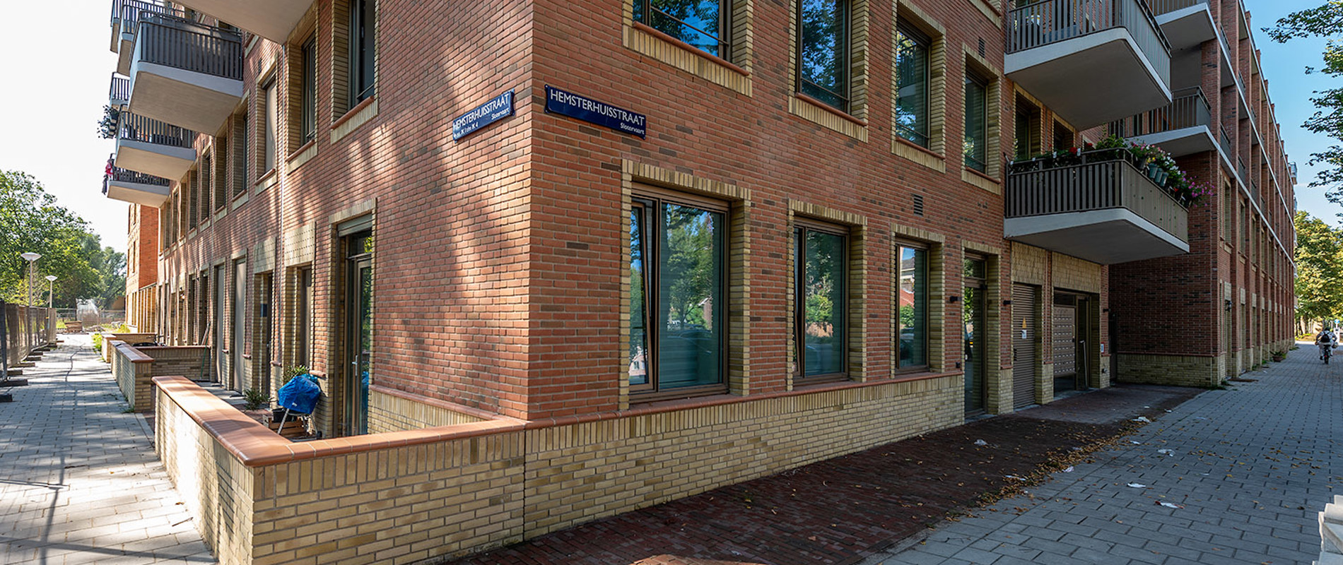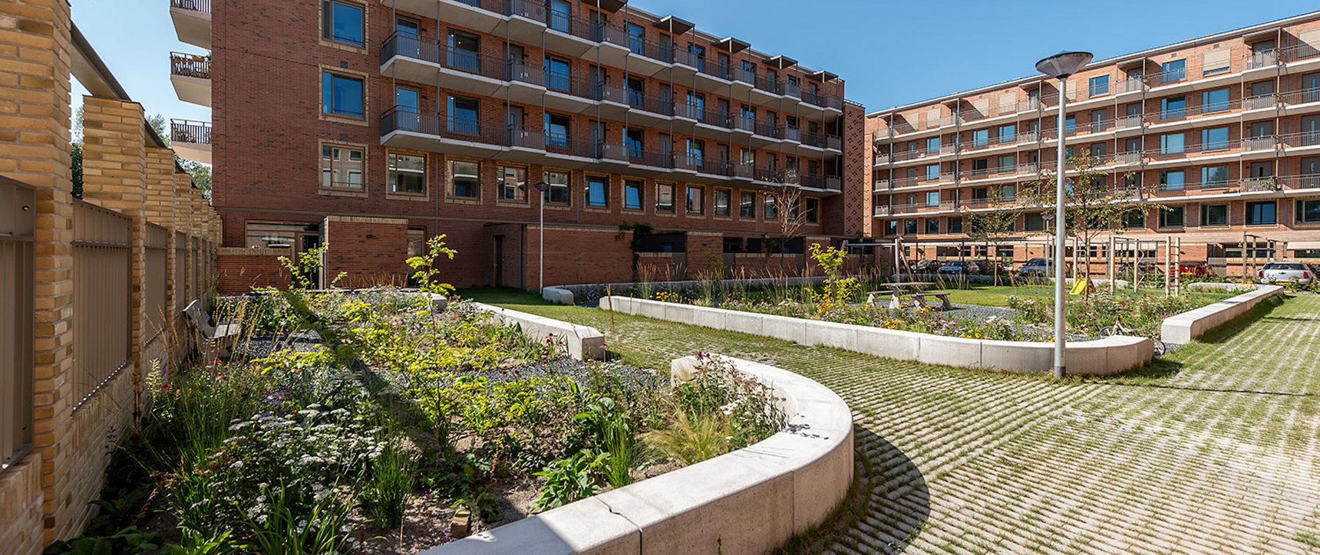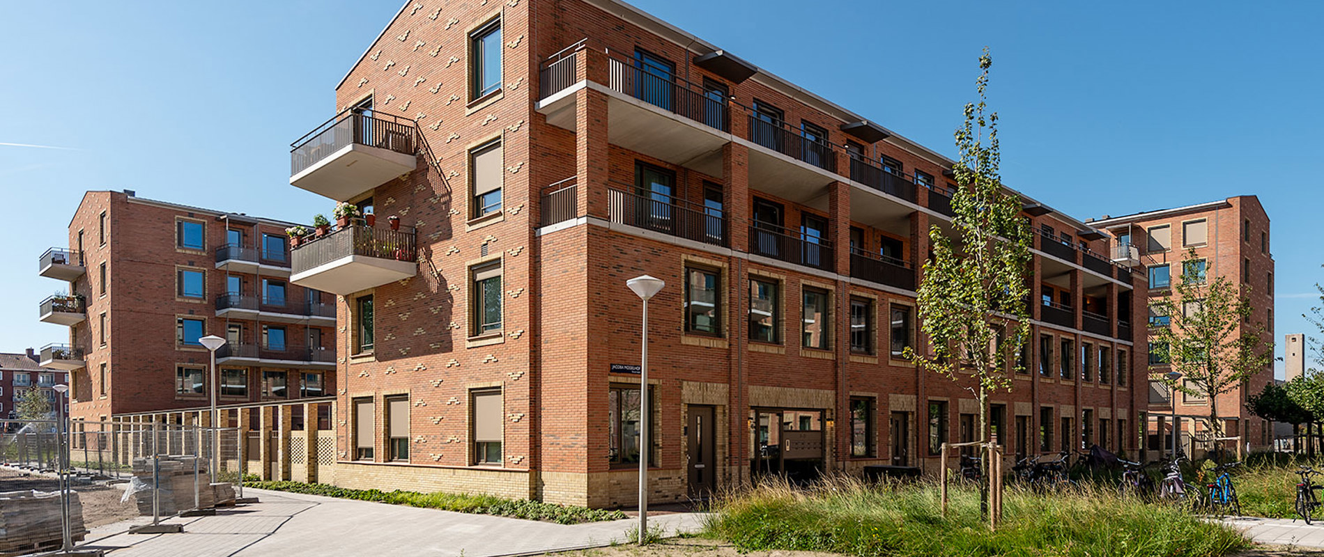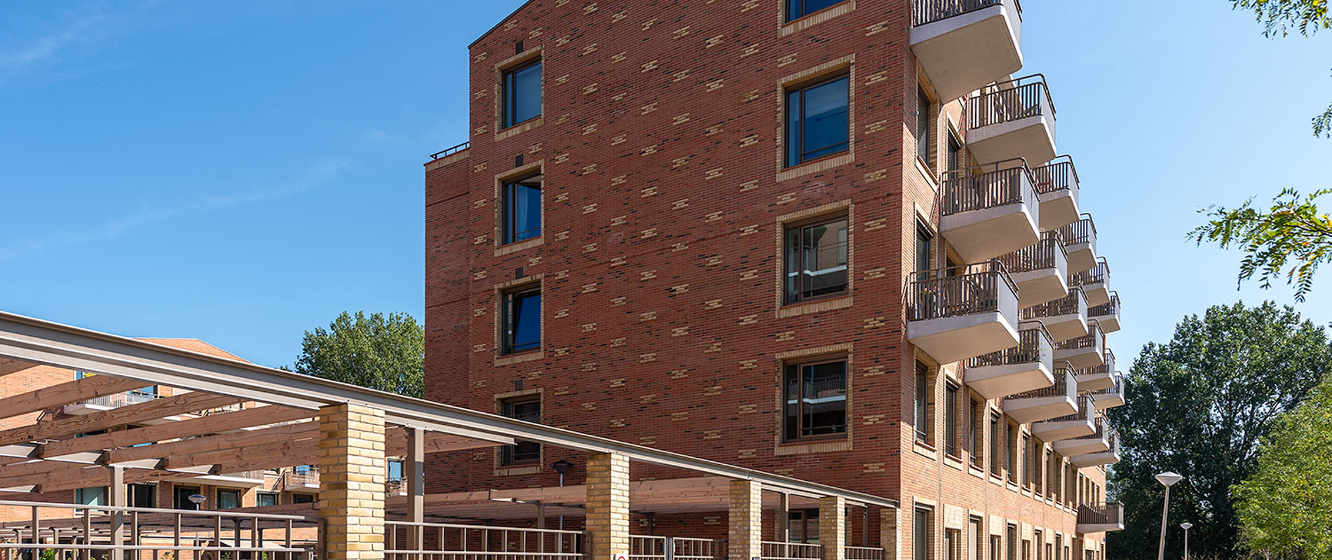 Elementen uit de oudbouw komen terug in het nieuwe ontwerp, zoals metselwerk en flauwe kappen. In de oudbouw bestond de begane grond uit bergingen. In de nieuwbouw komen daar grondgebonden eengezinswoningen, waardoor de buurt een levendiger karakter krijgt.