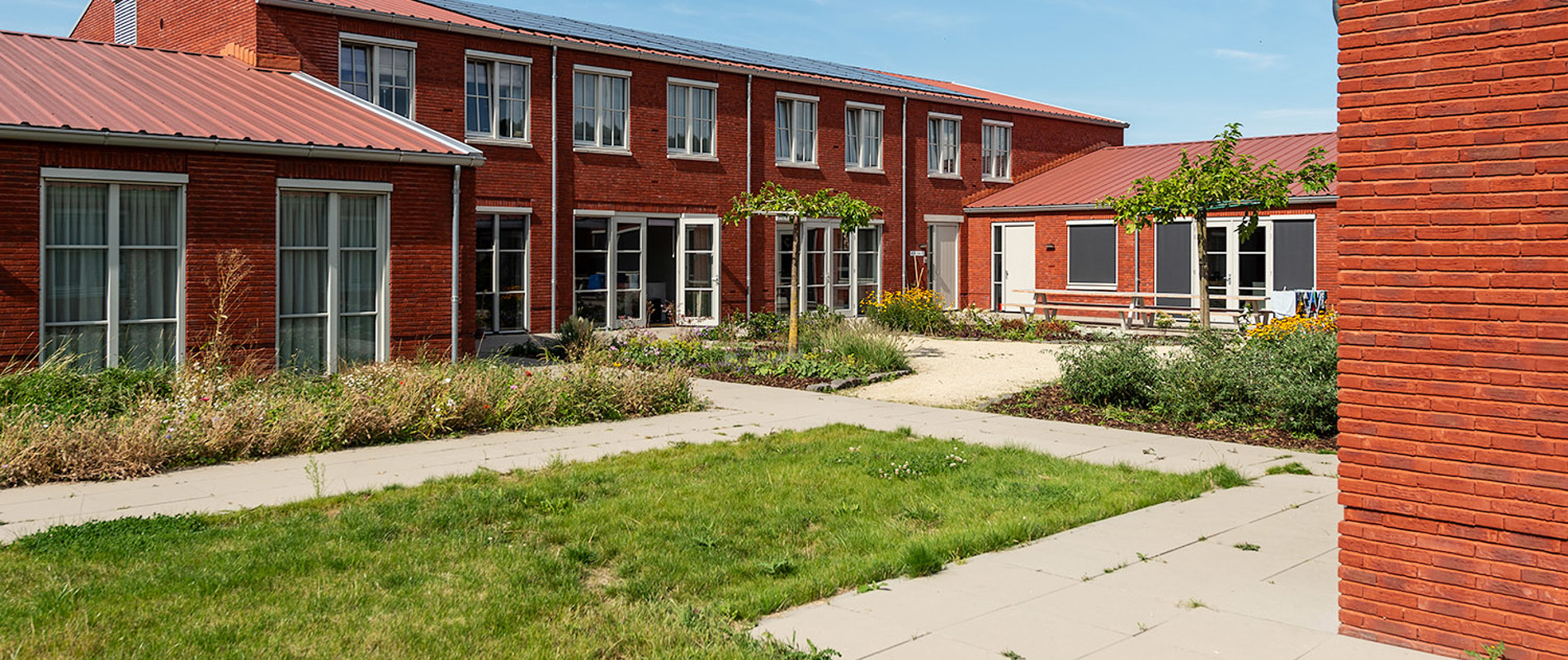 In de groene zelfbouwwijk Oosterwold, tussen Almere en Zeewolde, hebben ouders het initiatief genomen om een kleinschalige woonvoorziening te ontwikkelen voor hun zoon of dochter met een verstandelijke beperking. Het project bestaat uit vier woningen in een hofachtige opstelling en biedt plaats aan 28 jongvolwassenen. Zij krijgen ieder een eigen studio van ongeveer 30 m2. Per woning delen de bewoners een ruime woonkamer en woonkeuken. Ook komt er een ruimte voor dagbesteding.