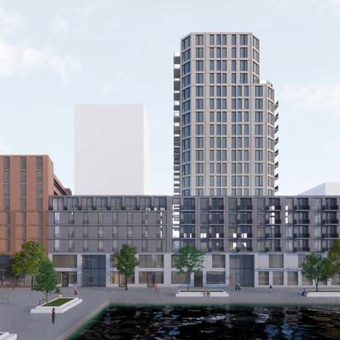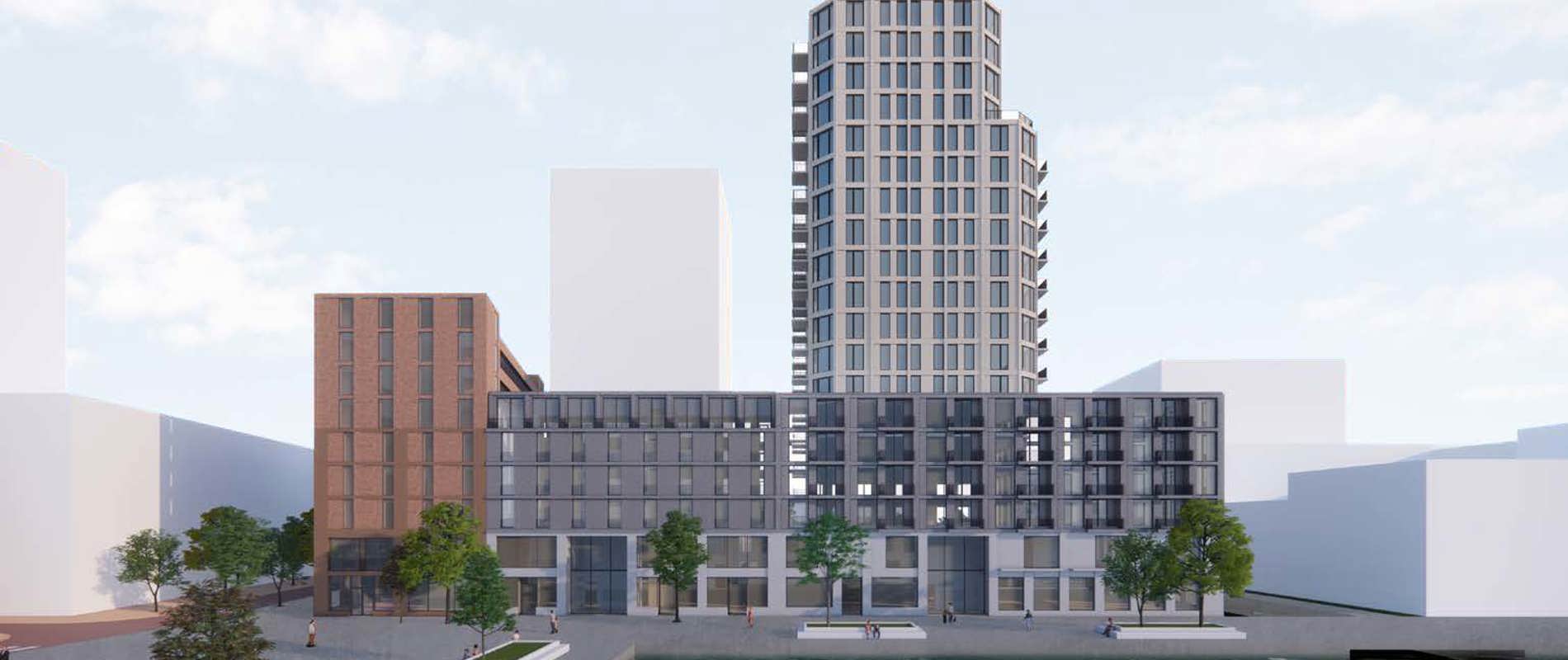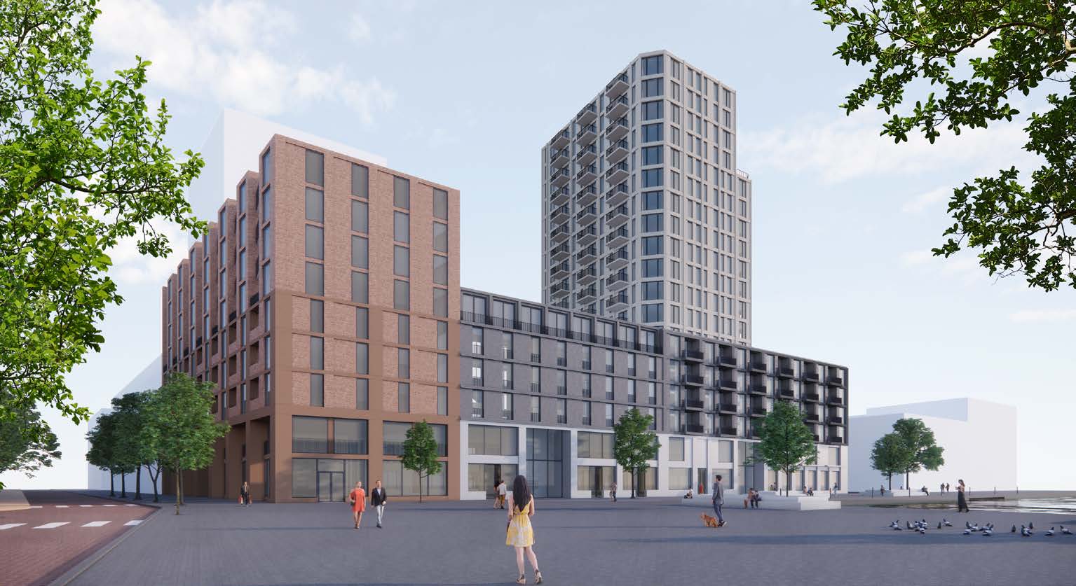 Op een centrale plek in Sluisbuurt ontwikkelen wij een multifunctioneel gebouw. Op de dubbelhoge plint komt een gevarieerd woonprogramma voor verschillende doelgroepen, met onder andere een toren met een prachtig uitzicht.
