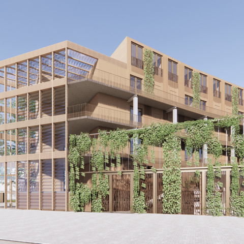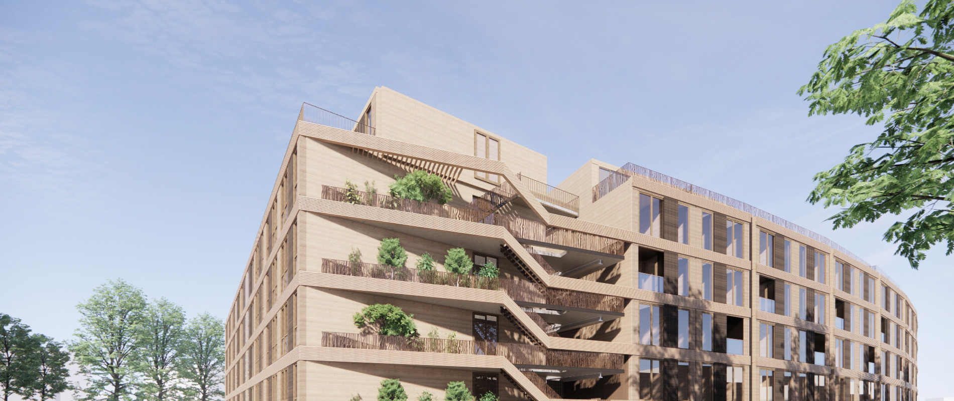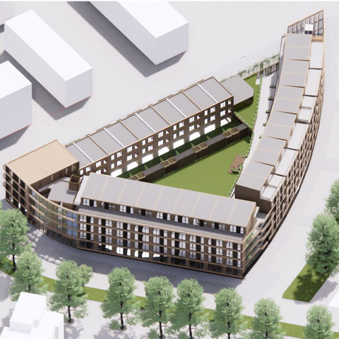 In het Homeruskwartier ontwikkelen we een van onze eerste appartementengebouwen in hout. Hiervoor werken we samen met Synchroon en Koopmans en het architectenbureau Arons en Gelauff architecten. Zij hebben onder andere De Pontsteiger in Amsterdam ontworpen, dat is genomineerd voor de European Union Mies van der Rohe Award 2022.