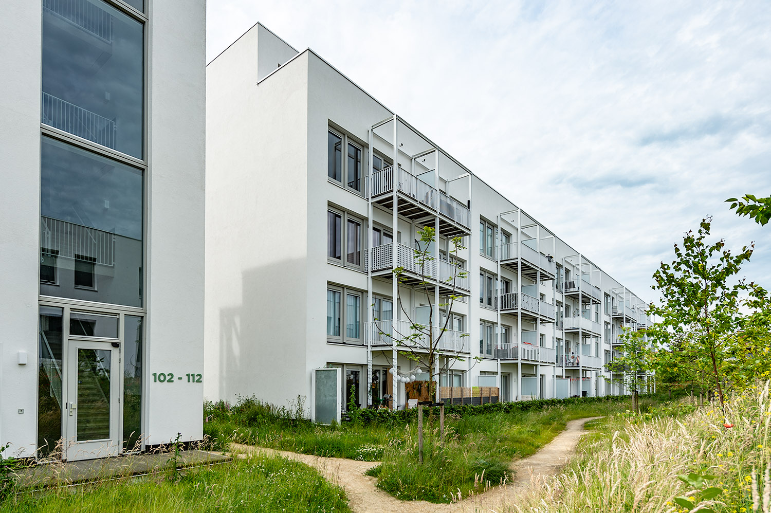 De architectuur van de nieuwe wijk kenmerkt zich door kwaliteit. Dat uit zich onder andere in hoge plafonds, veel daglicht en het gebruik van natuurlijke materialen. De sobere gevels vormen de achtergrond van een uitgesproken groene buitenruimte. Het landschap van het Hof van Duurzaamheid bestaat uit regentuinen, groene daken en gevels, natuurlijke grenzen tussen openbaar en privé, groenbestrating en wadi’s.