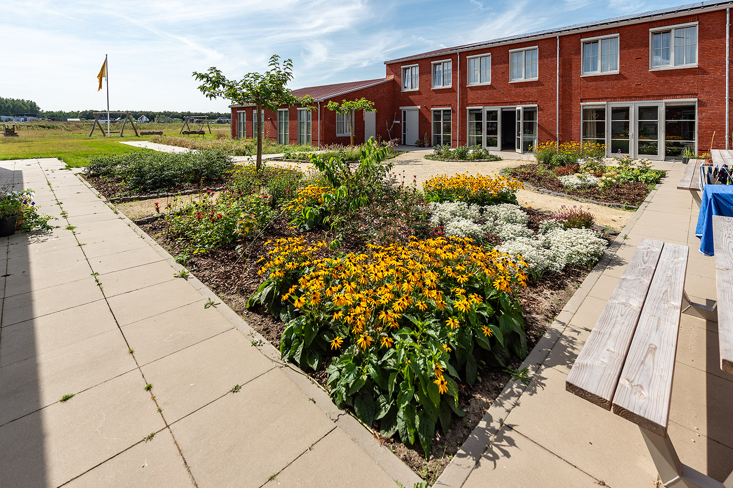 In de groene zelfbouwwijk Oosterwold, tussen Almere en Zeewolde, hebben ouders het initiatief genomen om een kleinschalige woonvoorziening te ontwikkelen voor hun zoon of dochter met een verstandelijke beperking. Het project bestaat uit vier woningen in een hofachtige opstelling en biedt plaats aan 28 jongvolwassenen. Zij krijgen ieder een eigen studio van ongeveer 30 m2. Per woning delen de bewoners een ruime woonkamer en woonkeuken. Ook komt er een ruimte voor dagbesteding.